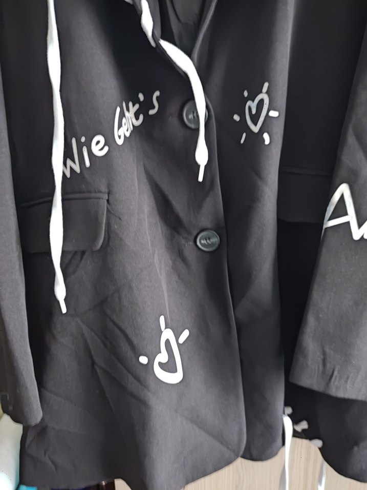 Siyah renkli, baskılı, düğmeli, normal boy midi hamile ceketi. Uzun kollu, salaş kesim ve notched yaka detaylıdır. Günlük kullanıma uygundur.