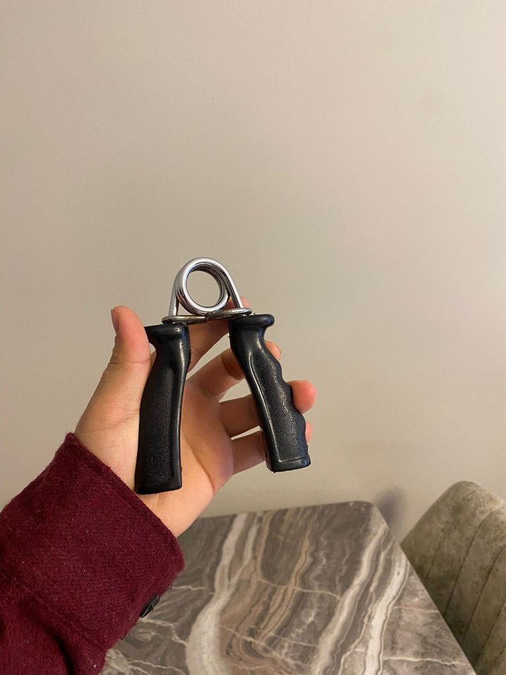 El kaslarını güçlendirmeye yönelik siyah baskılı el egzersiz aleti. ️