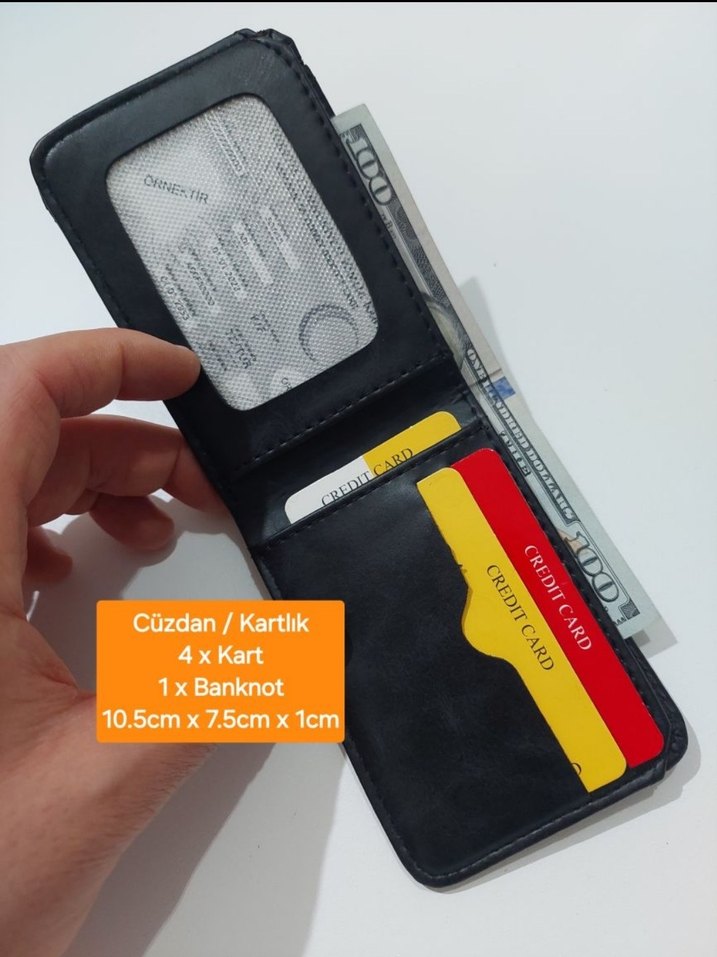 Siyah baskılı biker tarzı erkek cüzdanı, 1 banknot ve 4 kart alabilir. Boyutlar: 10.5cm x 7.5cm x 1cm.