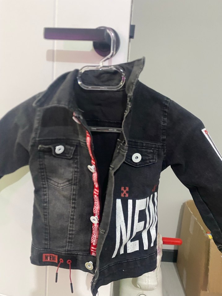 Siyah Baskılı Erkek Çocuk Denim Ceket - Görsel 1