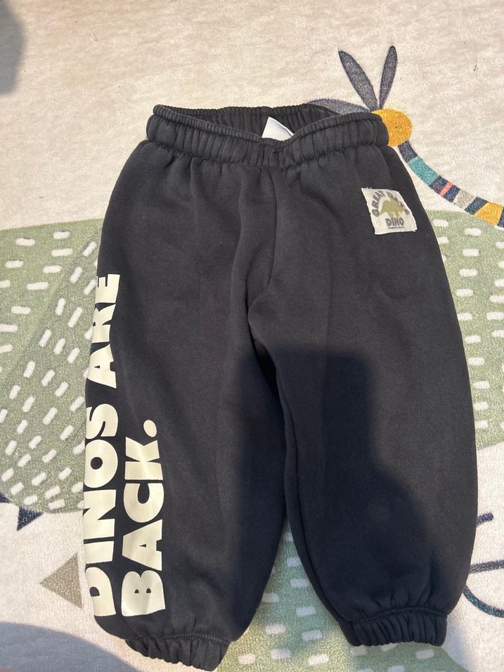Siyah renkli, baskılı ve bol kesim erkek çocuk eşofman altı. Elastik bel ve paçalar, cırt cırt detaylı, rock punk havasında.