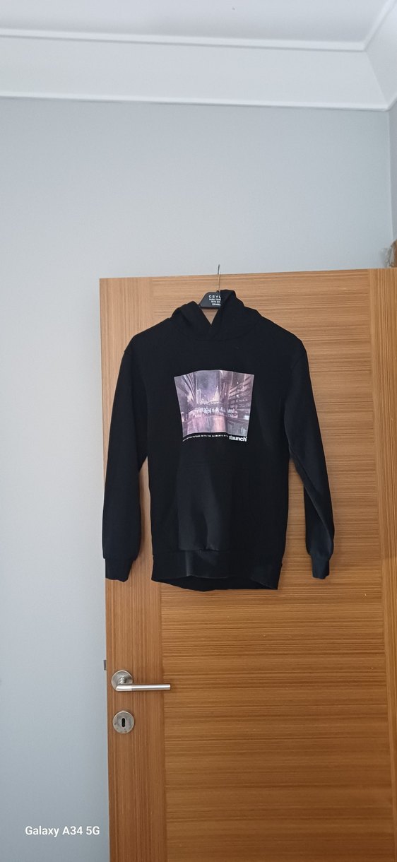 Siyah önü renkli ve baskılı, uzun kollu, yuvarlak yaka ve bol kesim içi polarli kalin erkek çocuk sweatshirtü. Günlük ve sokak stiline uygundur.