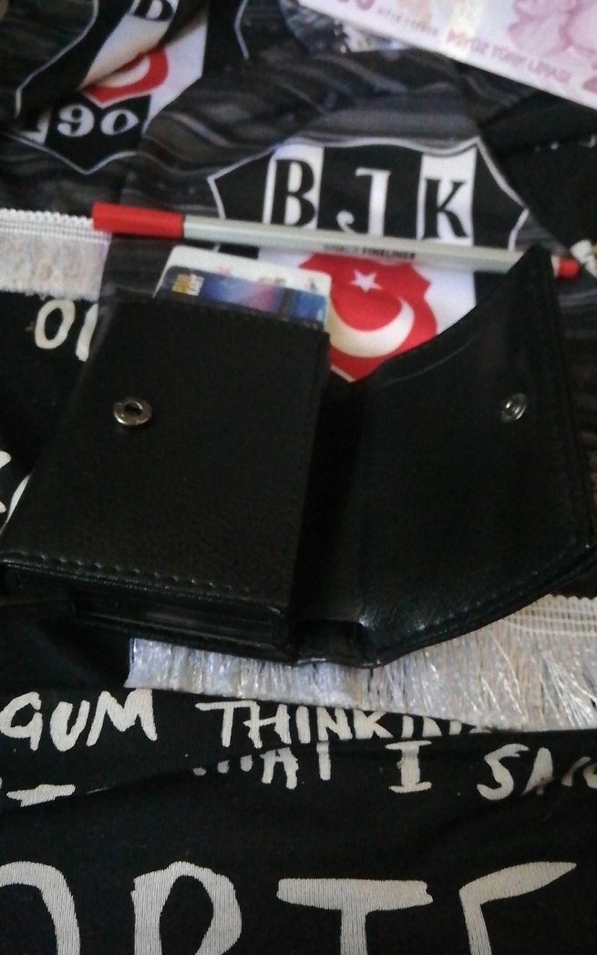 Siyah baskılı erkek cüzdan, çıtçıtlı kapanışı ve sade tasarımıyla biker tarzını yansıtıyor.