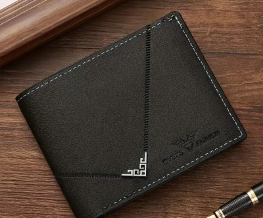 Siyah baskılı desenli, köşesinde dekoratif detay bulunan erkek cüzdanı. Çağdaş tarzda, trend ve iş stiline uygun.