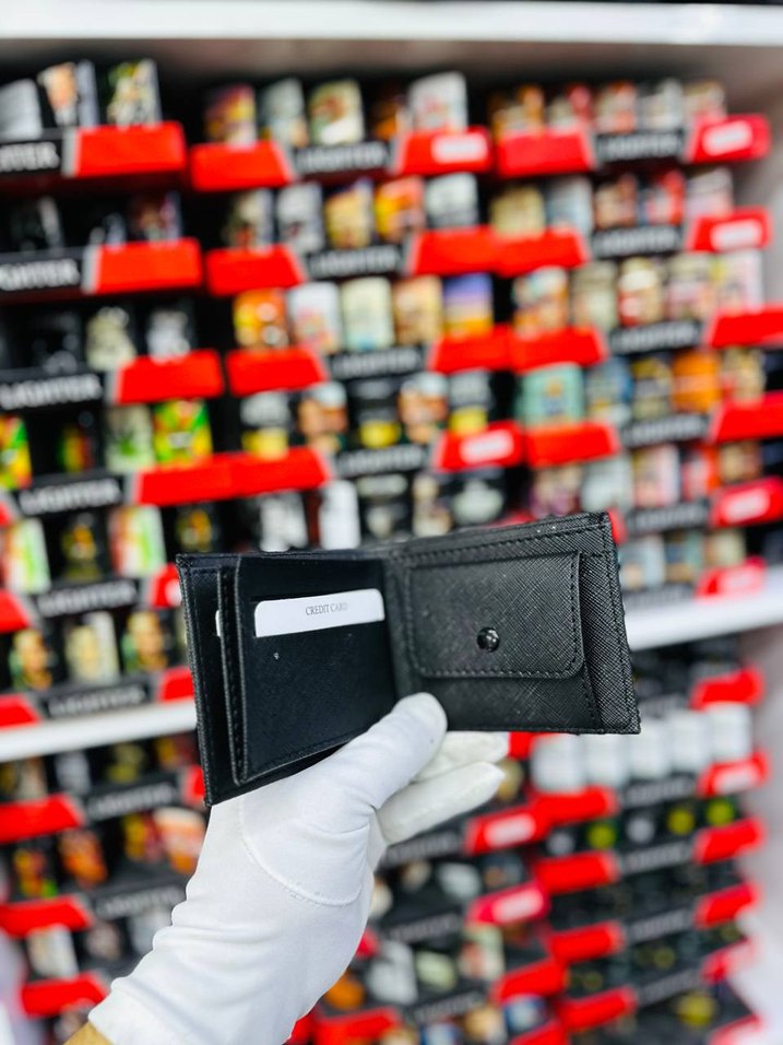 Siyah baskılı erkek cüzdanı, kart ve bozuk para bölmeleriyle dikkat çeker. Trendy, rahat sokak stili ve iş dünyası havası taşır.
