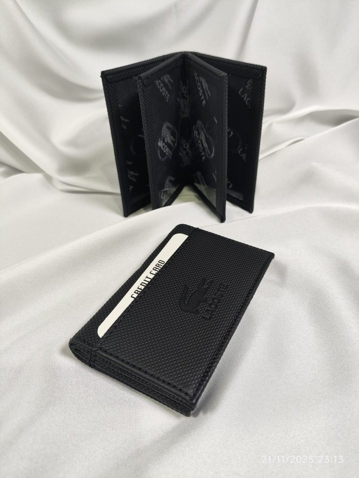 Siyah baskılı erkek cüzdanı, kart ve nakit için çoklu bölmeler içerir, klasik zarafet ve sokak modası stilini birleştirir.
