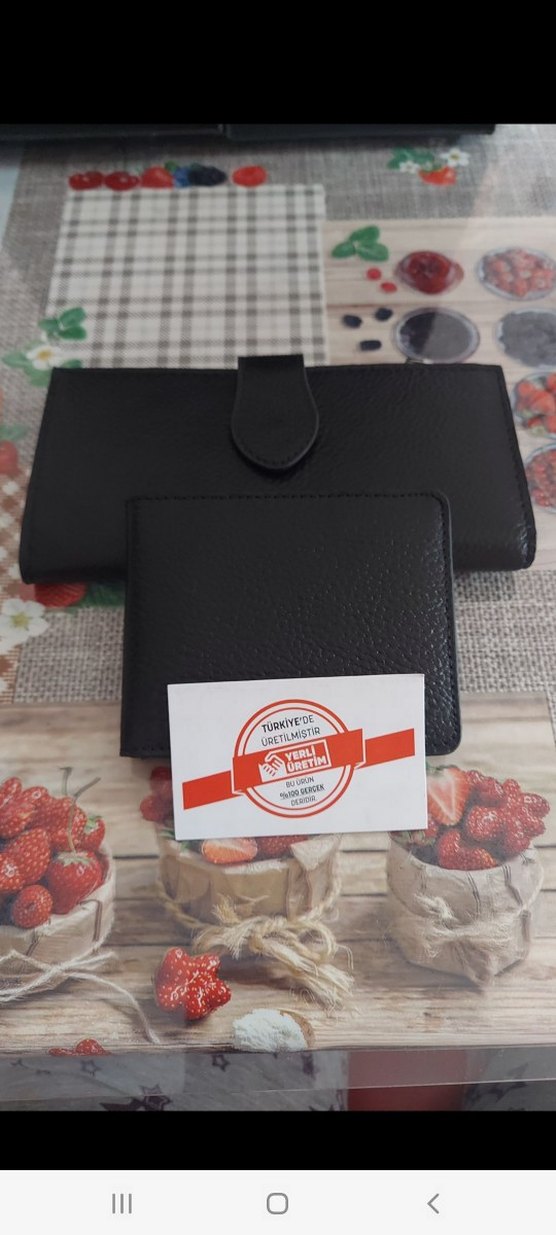 Siyah baskılı erkek cüzdanı, çıtçıtlı kapama ve küçük cüzdan içerir. Türkiye'de üretilmiştir.