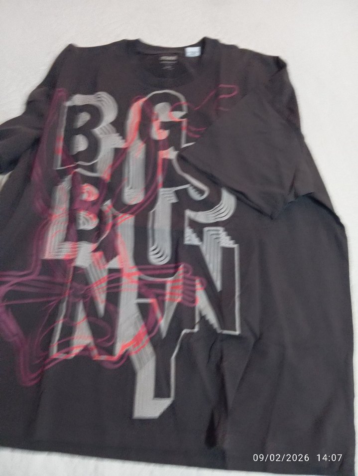 Siyah baskılı, lisansli oversize kesim erkek tişörtü, yuvarlak yakalı ve sentetik kumaştan. Günlük sokak stili için uygundur.