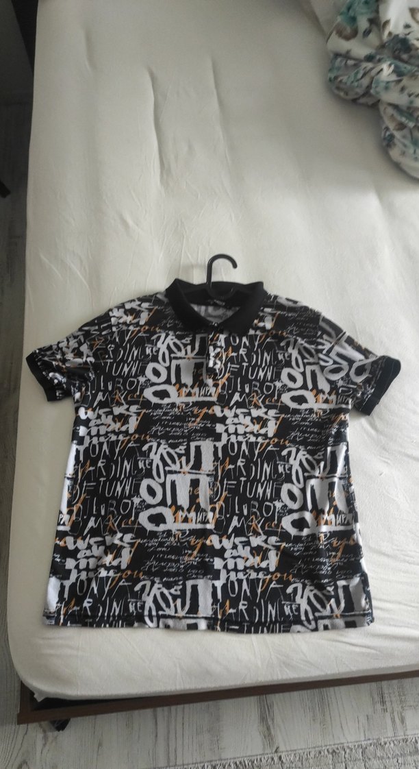 Kısa kollu, yakalı ve bol kesim erkek polo tişört. Siyah zemin üzerinde baskılı sokak stili deseni bulunur. Günlük kullanım için uygundur.