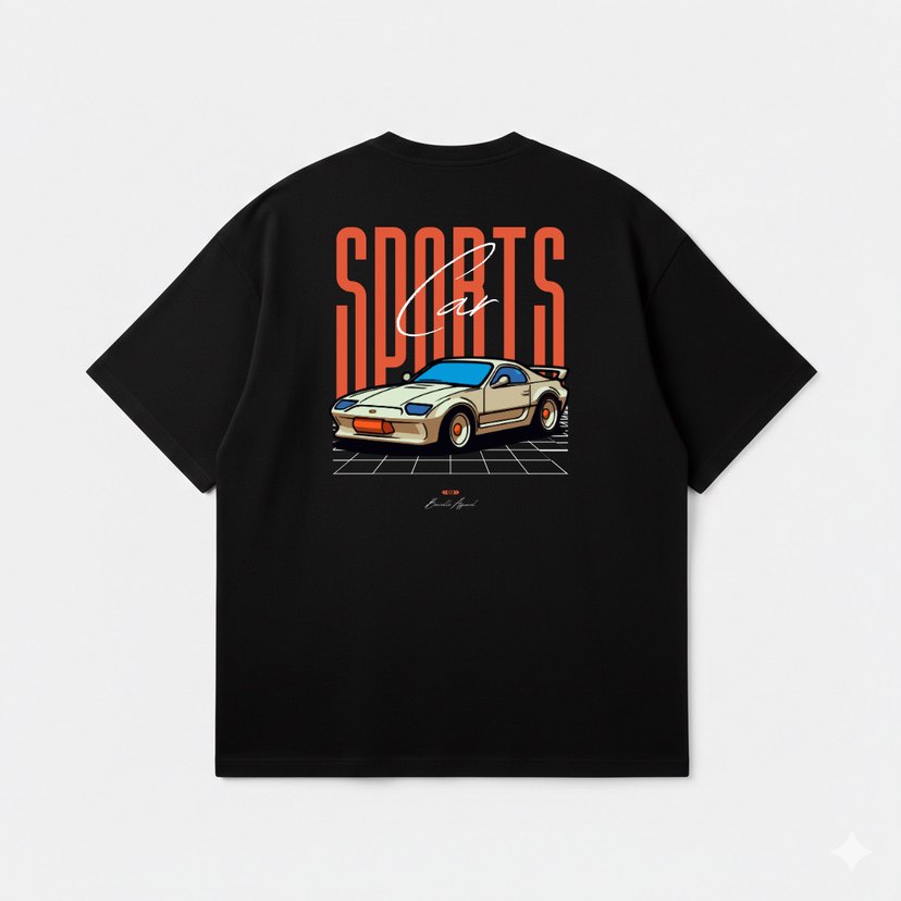 Siyah renkli, kısa kollu ve basic tişört erkek tişörtü. Sentetik kumaştan üretilmiş olup, üzerinde baskılı spor araba deseni bulunur. ️