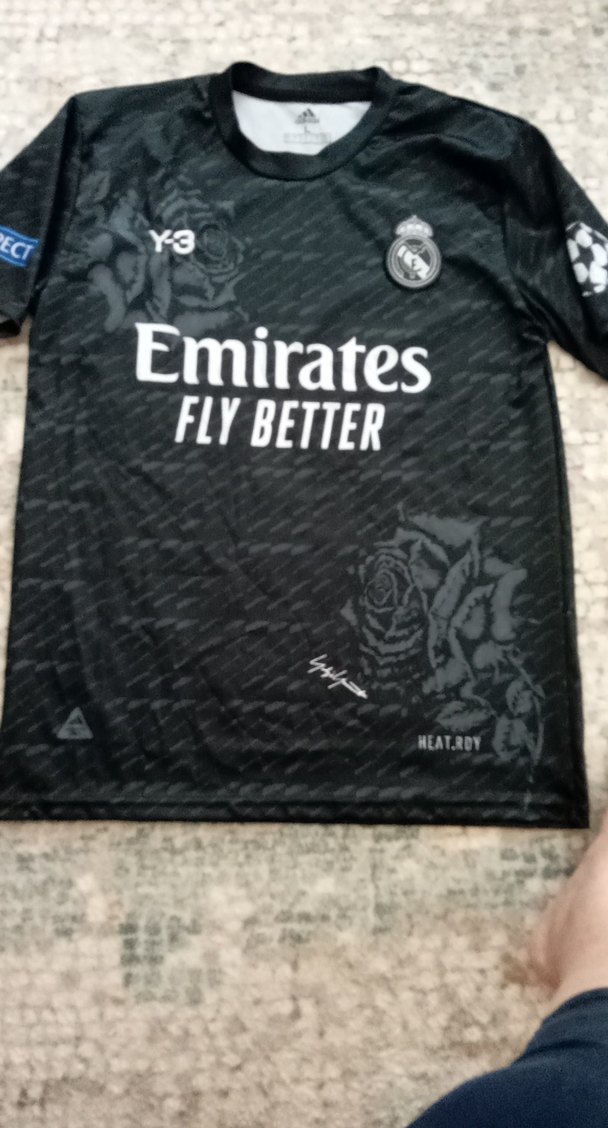 Siyah baskılı, kısa kollu, bisiklet yaka ve dar kesim erkek spor tişörtü. Sentetik kumaştan üretilmiş, 'Emirates FLY BETTER' baskılıdır. ⚽