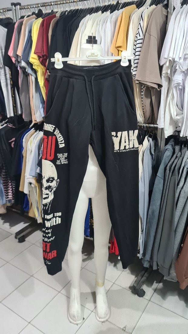 Siyah Baskılı Erkek Streetwear Eşofman Altı
