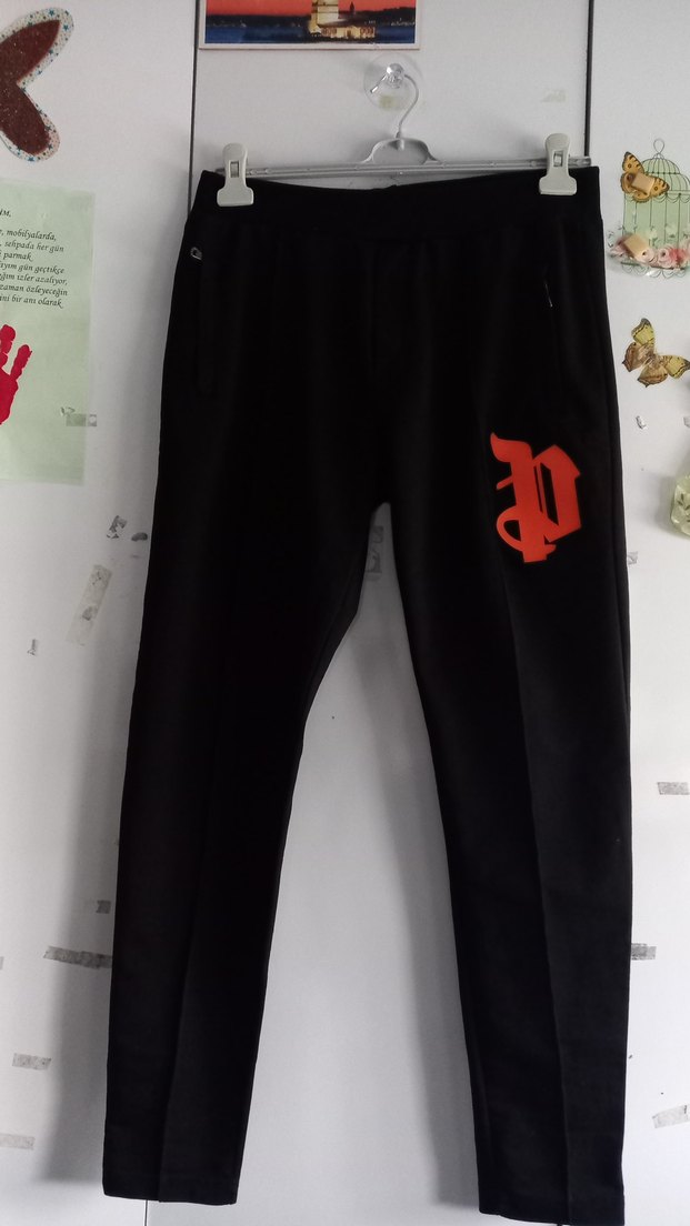 Siyah renkli, rahat kesim ve normal boy midi eşofman altı, yumuşak ve sıcak kumaştan üretildi. Tek bacakta kırmızı baskı detayıyla sokak modası ve spor tarzını birleştirir. L beden bel esnetince 48 cm basen 52 cm boy 98 cm ölçülere bakarak alınız