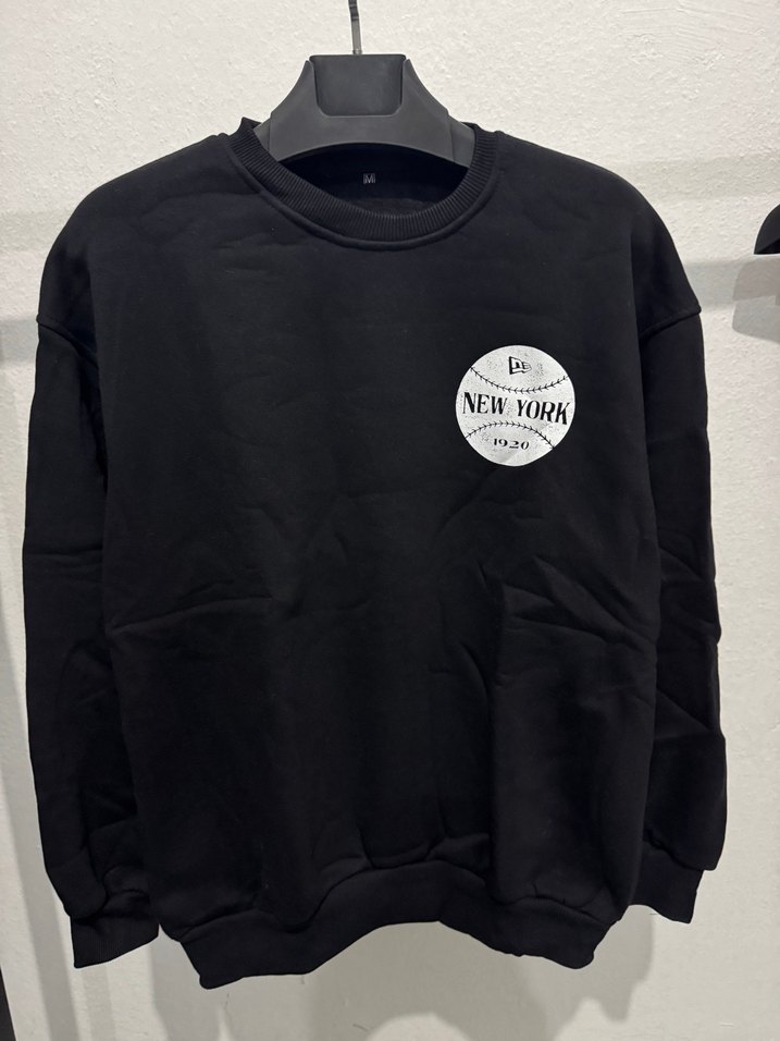 Siyah renkli, yuvarlak yaka ve uzun kollu erkek sweatshirtü, bol kesimi ve baskılı deseniyle sokak stilini yansıtıyor. Yumuşak ve sıcak kumaştan üretilmiştir, günlük kullanım için uygundur. Önünde "NEWYORA" yazısı bulunur.