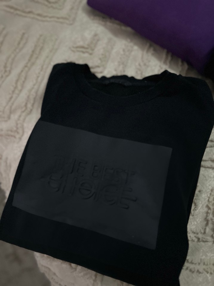 Siyah, baskılı, yuvarlak yaka, uzun kollu, rahat kesim erkek sweatshirt. Yumuşak ve sıcak kumaştan, gündelik athleisure tarz için uygun.