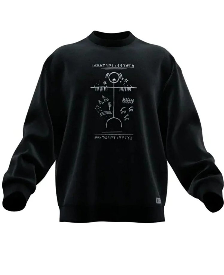 Siyah, yuvarlak yakalı, uzun kollu ve bol kesim erkek sweatshirt, yumuşak ve sıcak kumaştan üretilmiştir. Ön kısmında baskılı tasarıma sahiptir, günlük kullanım için şık bir sokak stili sunar.