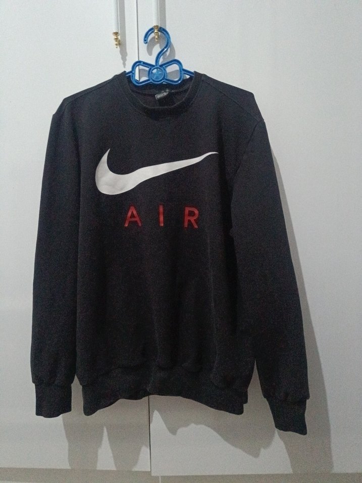 Siyah renkli, uzun kollu ve yuvarlak yaka erkek sweatshirt. Baskılı "AIR" deseniyle rahat ve salaş bir görünüme sahip. Yumuşak sentetik kumaştan üretilmiştir.