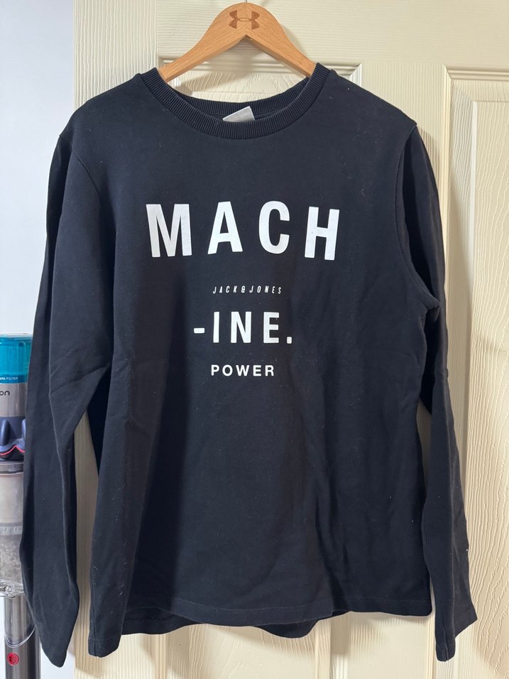 Siyah renkli, uzun kollu ve bisiklet yaka erkek sweatshirtü. Baskılı yazı detaylı, bol kesim ve denim görünümlü kumaştan üretilmiştir.