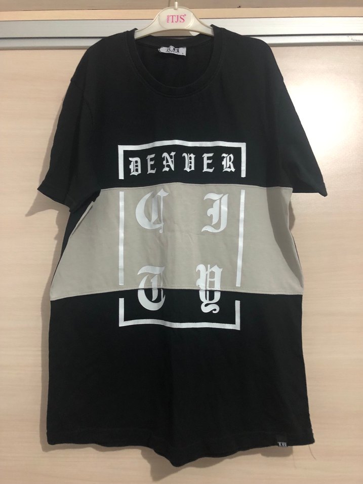 Pamuk kumaştan, kısa kollu, yuvarlak yakalı ve bol kesim siyah erkek tişörtü. Üzerinde DENVER ve ITJS baskıları bulunur, rahat sokak stili sunar.