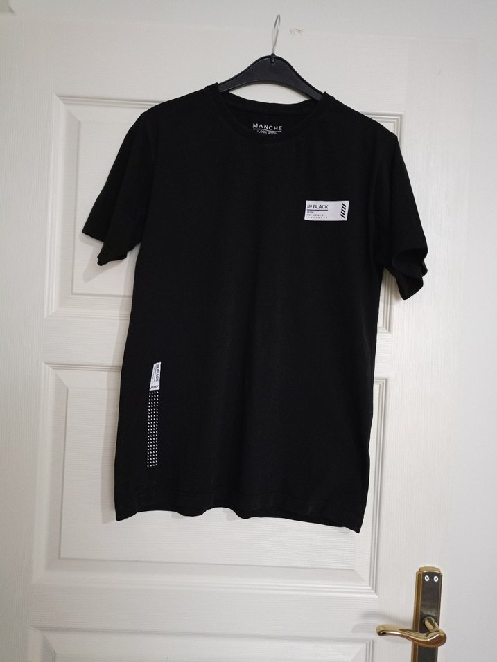 Kısa kollu, bisiklet yaka siyah erkek tişörtü, baskılı detaylar ve bol kesimle rahat sokak stili sunar.