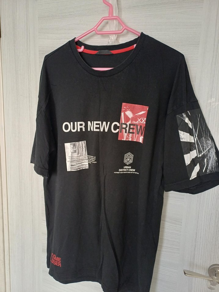 Siyah renk, baskılı ve kısa kollu erkek tişörtü. Loose fit kesim, crew neck yakalı, günlük sokak stili için uygun. 'OUR NEWCREW' yazılı baskı bulunur.