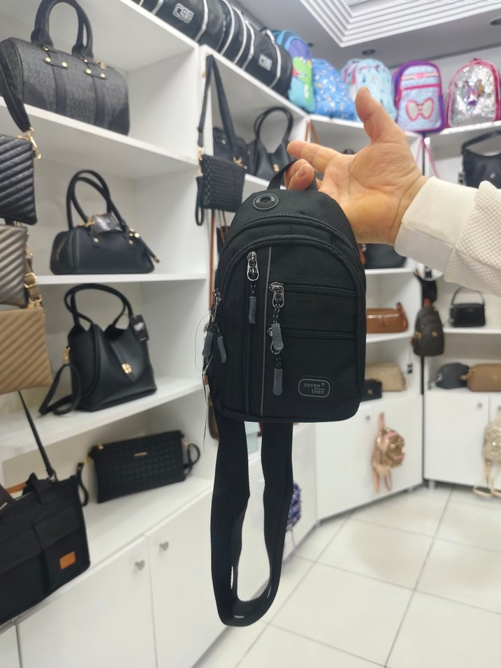 Siyah baskılı ve fermuarlı bölmeleri olan bu omuz çantası, trend sokak stiline uygun rahat kullanımlı ayarlanabilir askıya sahiptir.