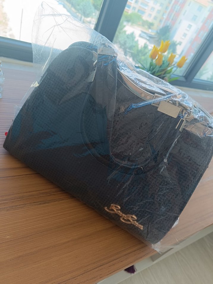 Siyah Baskılı Fermuarlı Kadın Çanta