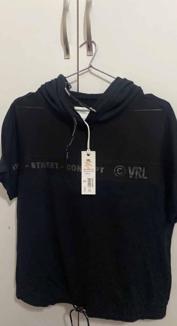 Siyah renkli, baskılı ve Velcro detaylı Kısa kollu, salaş kesim ve yuvarlak yaka tasarıma sahip.vrl yazılı streetwear tarzı spor