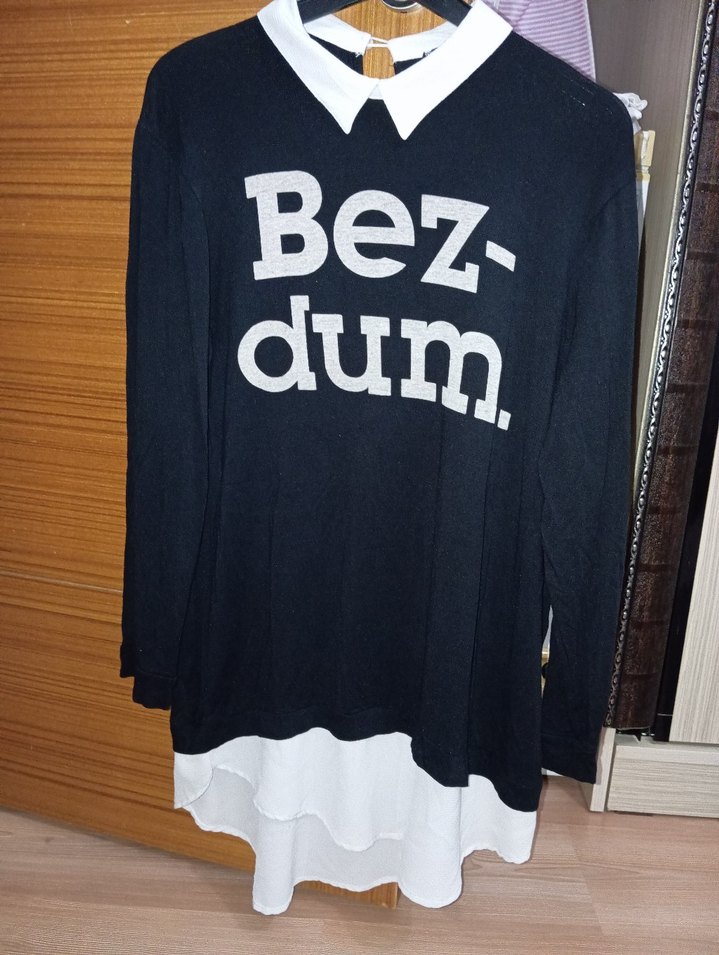 Pamuk kumaştan, uzun kollu ve bol kesim siyah gömlek. Düğmeli, bisiklet yaka ve "Bez-dum." baskılı tasarıma sahip. Günlük rahat kullanım için uygundur.