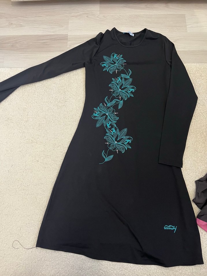 Uzun kollu, bisiklet yaka ve baskılı çiçek desenli, sentetik kumaştan yapılmış siyah hamile, drapeli ve dar kesim