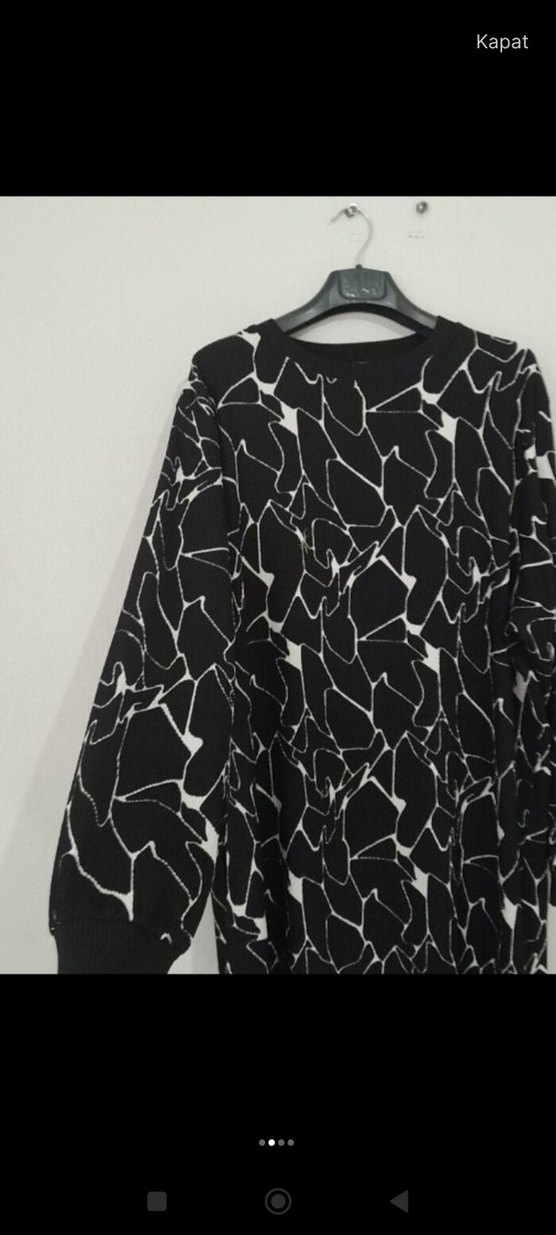 Siyah baskılı, uzun kollu, yuvarlak yaka ve elastik kumaştan yapılmış, uzun boy ve rahat kesim kadın elbise Günlük kullanıma uygun, rahat ve şık. Marka: elele.