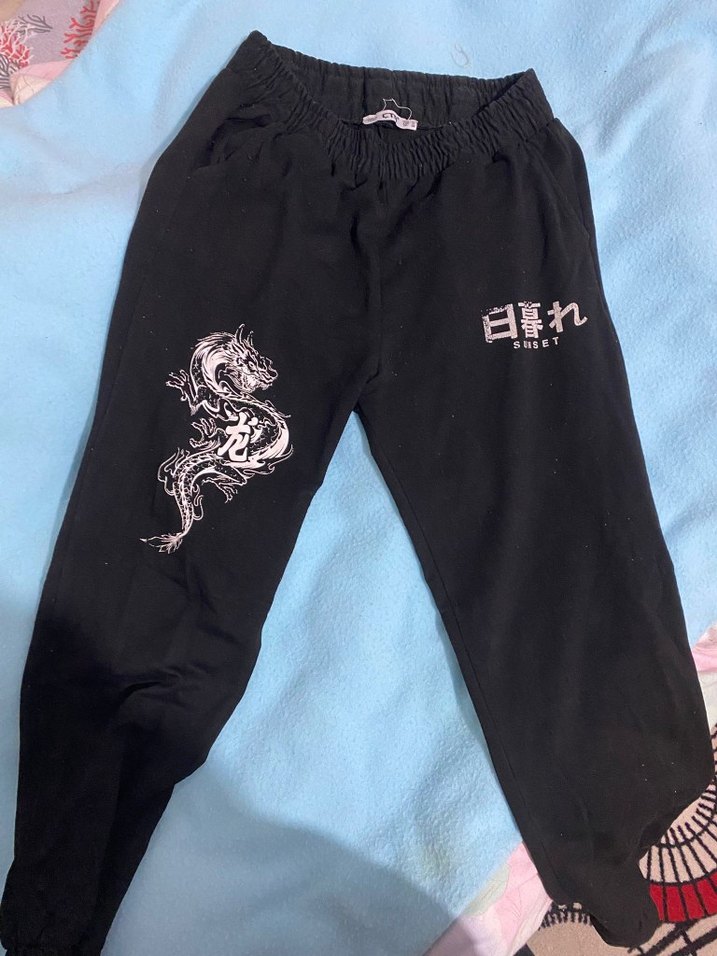 Siyah, baskılı, bol kesim kadın jogger eşofman