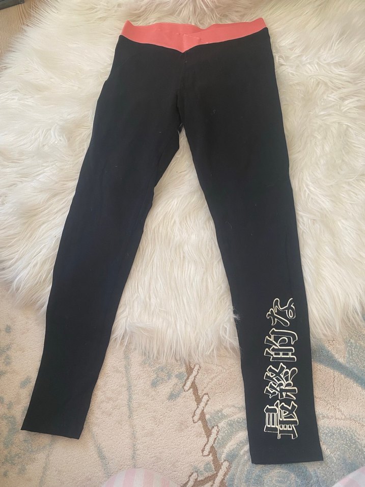 Siyah baskılı, elastik bel bantlı ve sentetik kumaştan yapılmış, günlük kullanıma uygun dar kesim tayt.