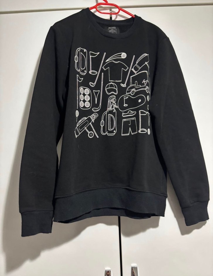 Siyah renkli, baskılı, uzun kollu ve yuvarlak yaka kadın sweatshirt. Rahat kesimi ve yumuşak, sıcak kumaşıyla günlük kullanıma uygundur.