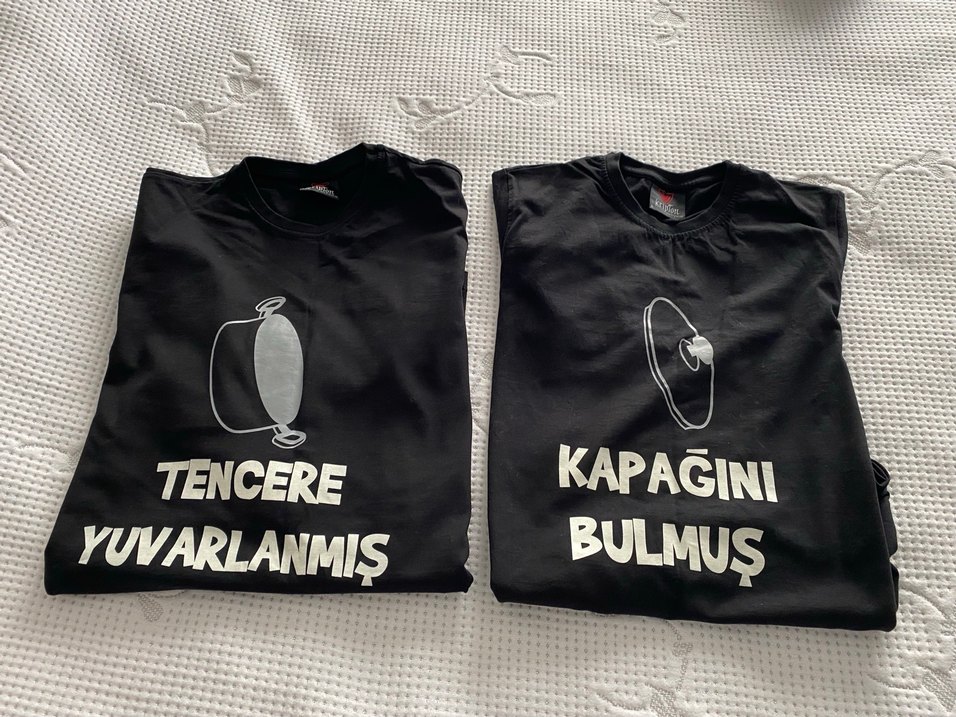 Kalıpları küçük. Kadın tshirt S beden uyumlu, erkek tshirt L beden uyumludur . Bir kez kullanıldı