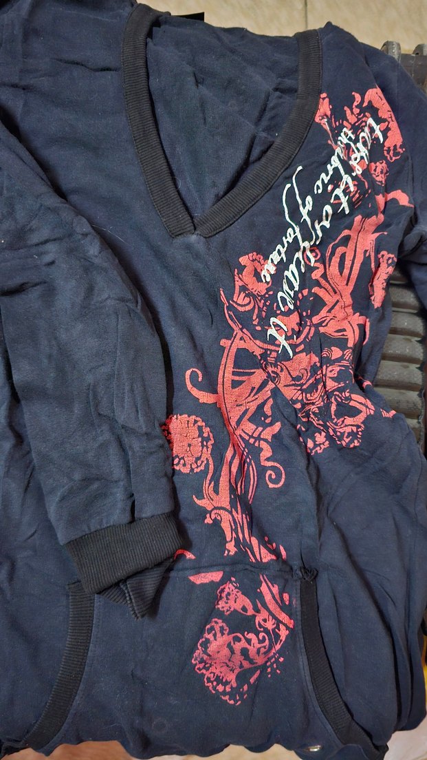 Siyah, baskılı, kapüşonlu ve fermuarlı, uzun kollu. Orta boy midi uzunluğunda, grunge punk tarzında günlük kullanıma uygun.