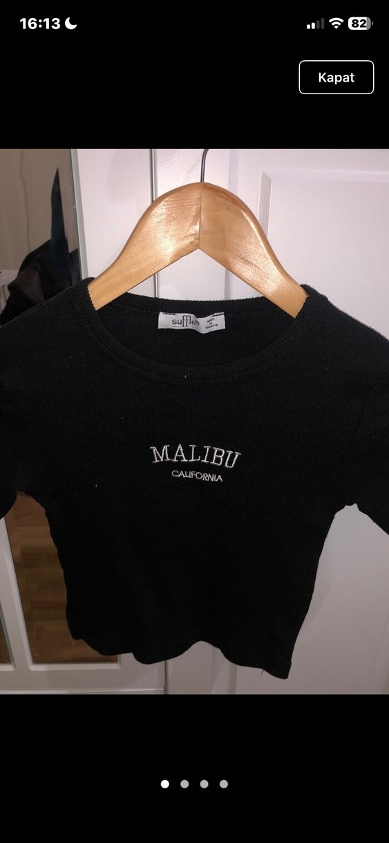 Siyah renkli, baskılı ve kısa kollu. Dar kesimi ve yuvarlak yakasıyla rahat ve şık bir sokak stili sunar. Üzerinde "MALIBU CALIFORNIA" yazısı bulunur. Standart bedendir. Çok az giyildi ve hiçbir kusuru yok yeni gibi. Bir butikten almıştım. Vücudu saran yapıda.