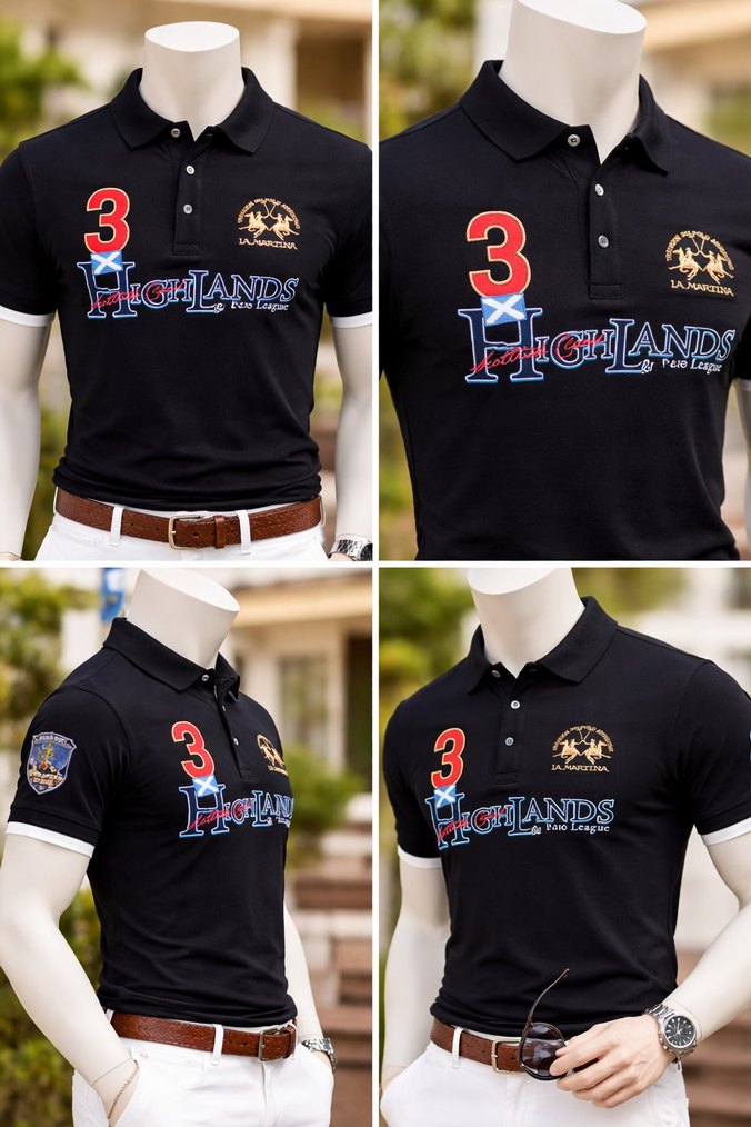 Siyah Baskılı Kısa Kollu Erkek Polo Tişört
