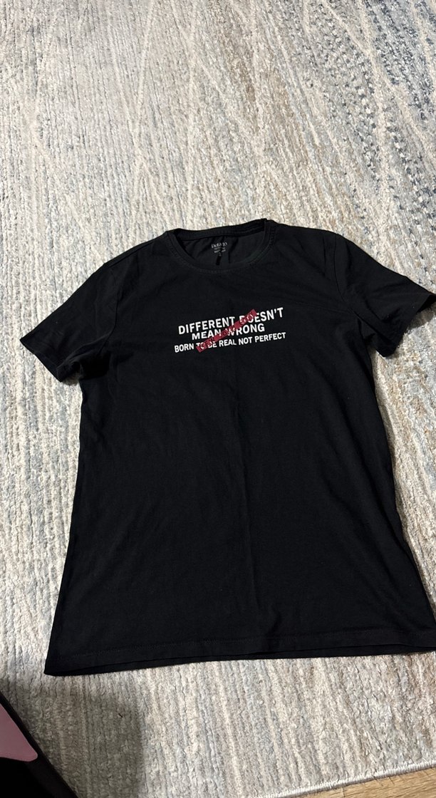 Düz siyah, kısa kollu ve bisiklet yaka erkek tişörtü. Önde baskılı yazı bulunur. Sade ve rahat, günlük kullanım için uygundur.