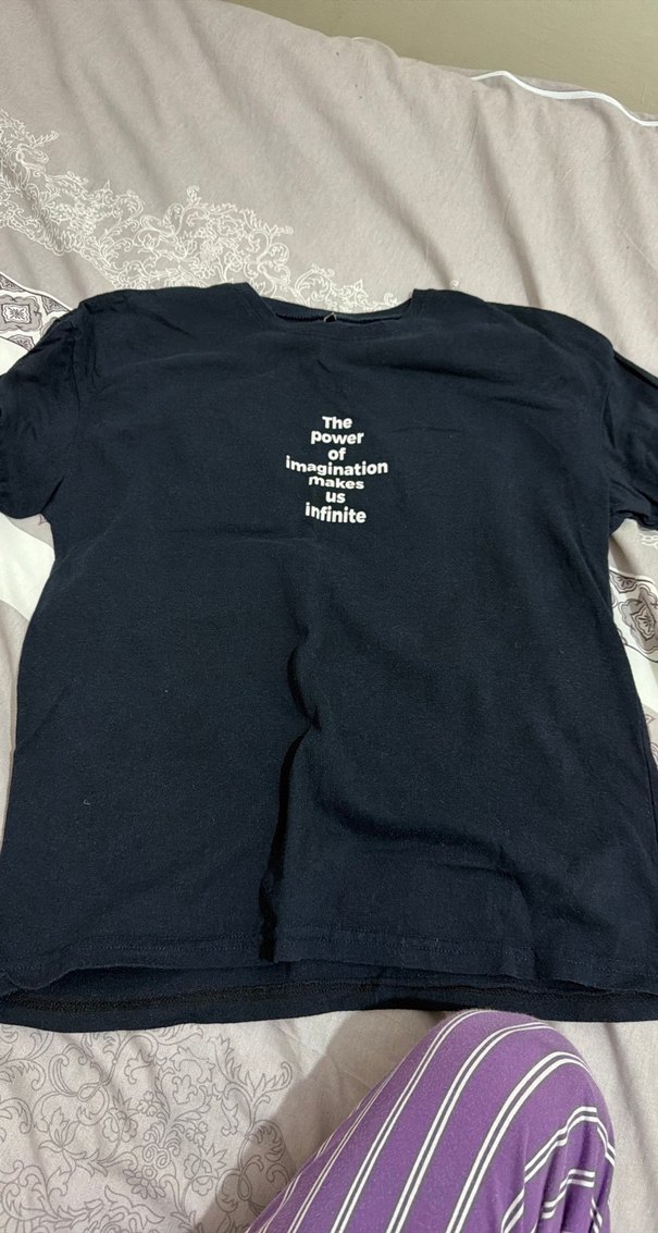 Siyah renkli, kısa kollu, yuvarlak yakalı hamile tişörtü. Pamuklu kumaştan, rahat ve bol kesim. Üzerinde ilham verici baskı bulunur. Günlük kullanıma uygun.