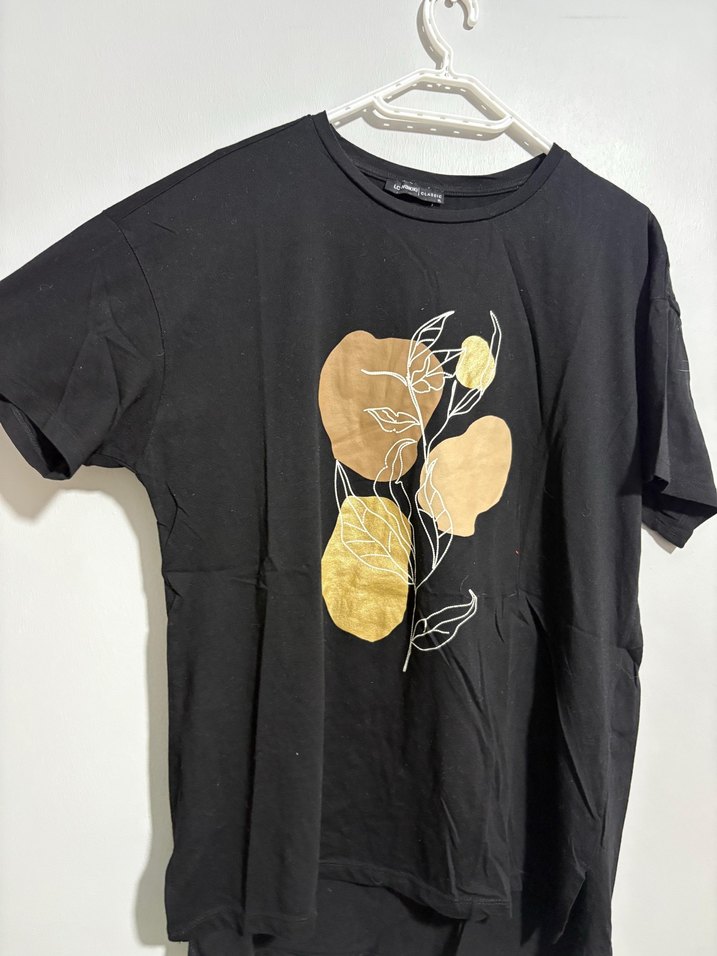 Siyah Baskılı Kısa Kollu Kadın Tişört