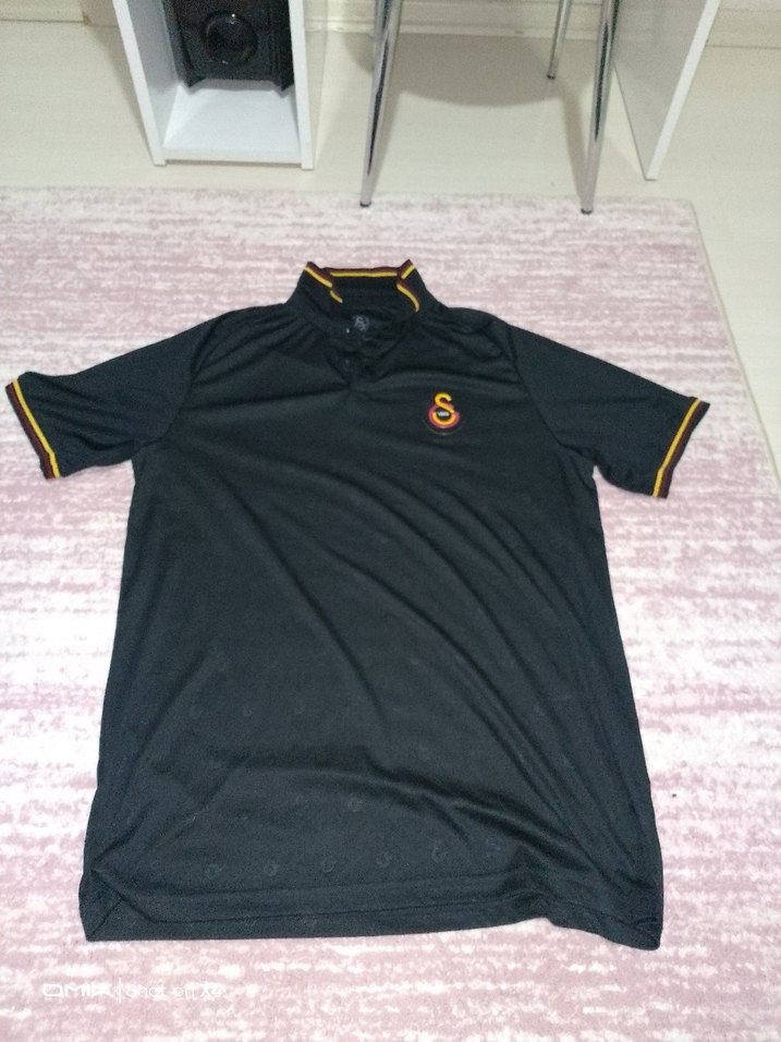 Sentetik kumaştan, düğmeli yakalı ve baskılı desene sahip siyah kısa kollu polo tişört. Rahat kesimiyle spor ve günlük kullanıma uygundur.