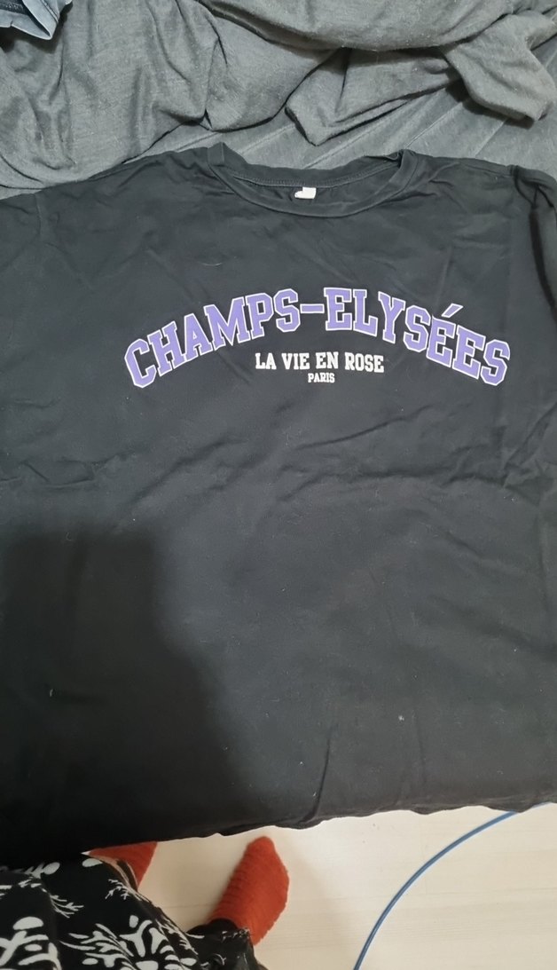Siyah renkli, kısa kollu, bol kesim tişört. Önünde "CHAMPS-ÉLYSÉES LA VIE EN ROSE PARIS" baskısı bulunur. Yumuşak ve sıcak kumaştan üretilmiştir.