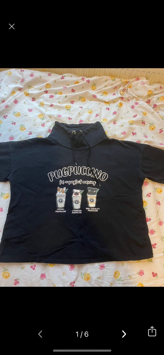 Kısa, kabarık kollu, yuvarlak yaka siyah sweat Önden baskılı, bol kesim ve midi boyda, gündelik rahat kullanıma uygun.