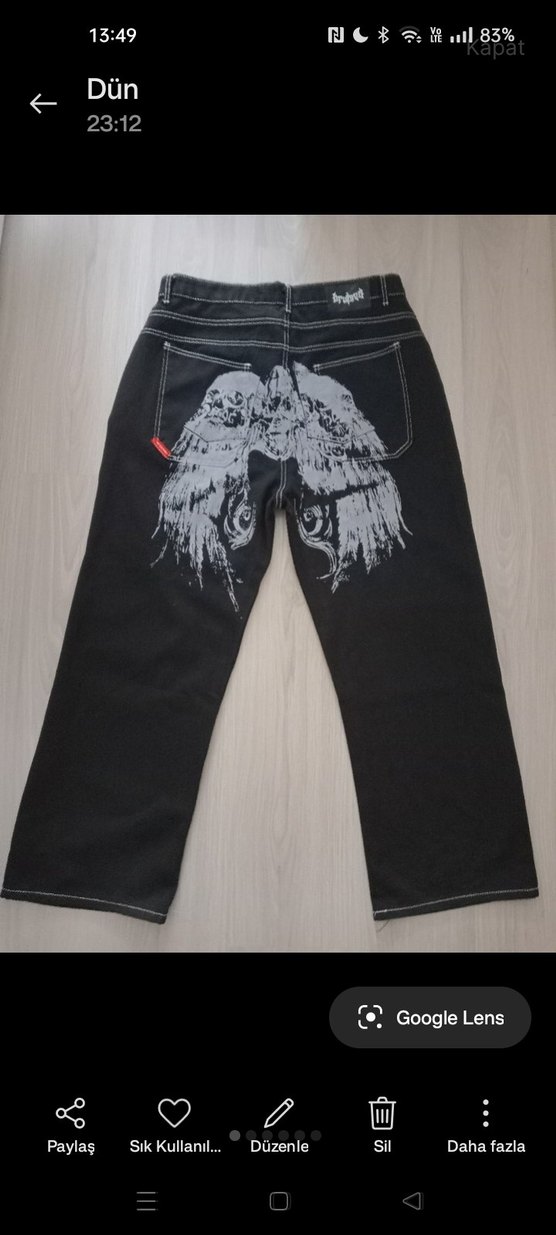 Siyah Baskılı Loose Fit Erkek Kot Pantolon