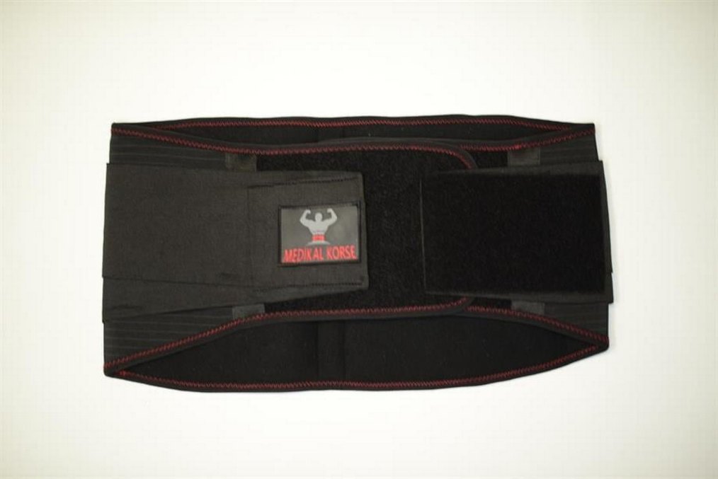 Siyah baskılı, vücuda oturan medikal korse, normal midi uzunluğunda ve 'MEDIKALKORSE' markalıdır. Tüm bedenler mevcut