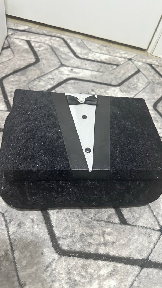 Düğün için siyah baskılı midi uzunlukta, yakası çentikli, askılı kollu ve tokalı detaylı klasik ve gotik tarzda regular fit smokin.