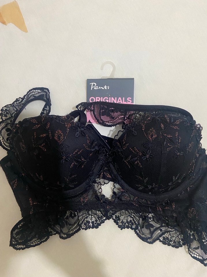 Siyah baskılı midi uzunlukta goth tarzı sütyen, dantel detaylı ve Penti Originals etiketiyle. (Denediğimde etiketini koparsım ama atmadım hiç giyilmedi tertemiz bana büyük geliyor