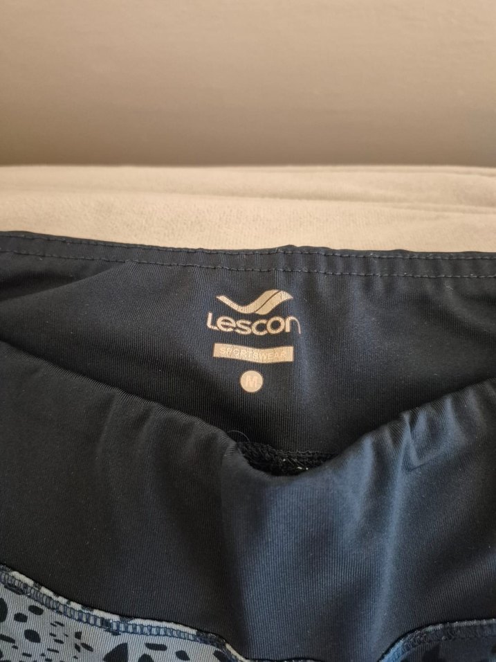 Siyah baskılı, sentetik kumaştan yapılmış, Velcro ayarlı, spor midi uzunlukta dar kesim şort. Lescon marka.