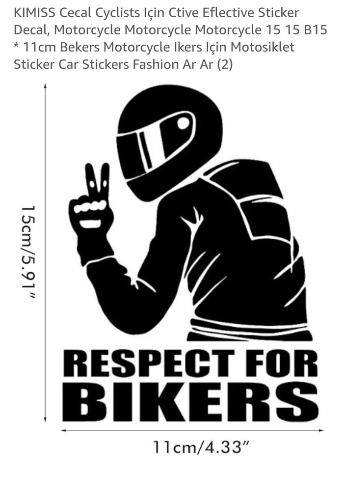 Motosiklet ve araçlar İçin Sticker, kaliteli malzemeden üretilmiştir. İz bırakmaz. Motosikletlilere saygı stickerı. ölçüler ve diğer tüm özellikler son resimde mevcuttur. Stok:2